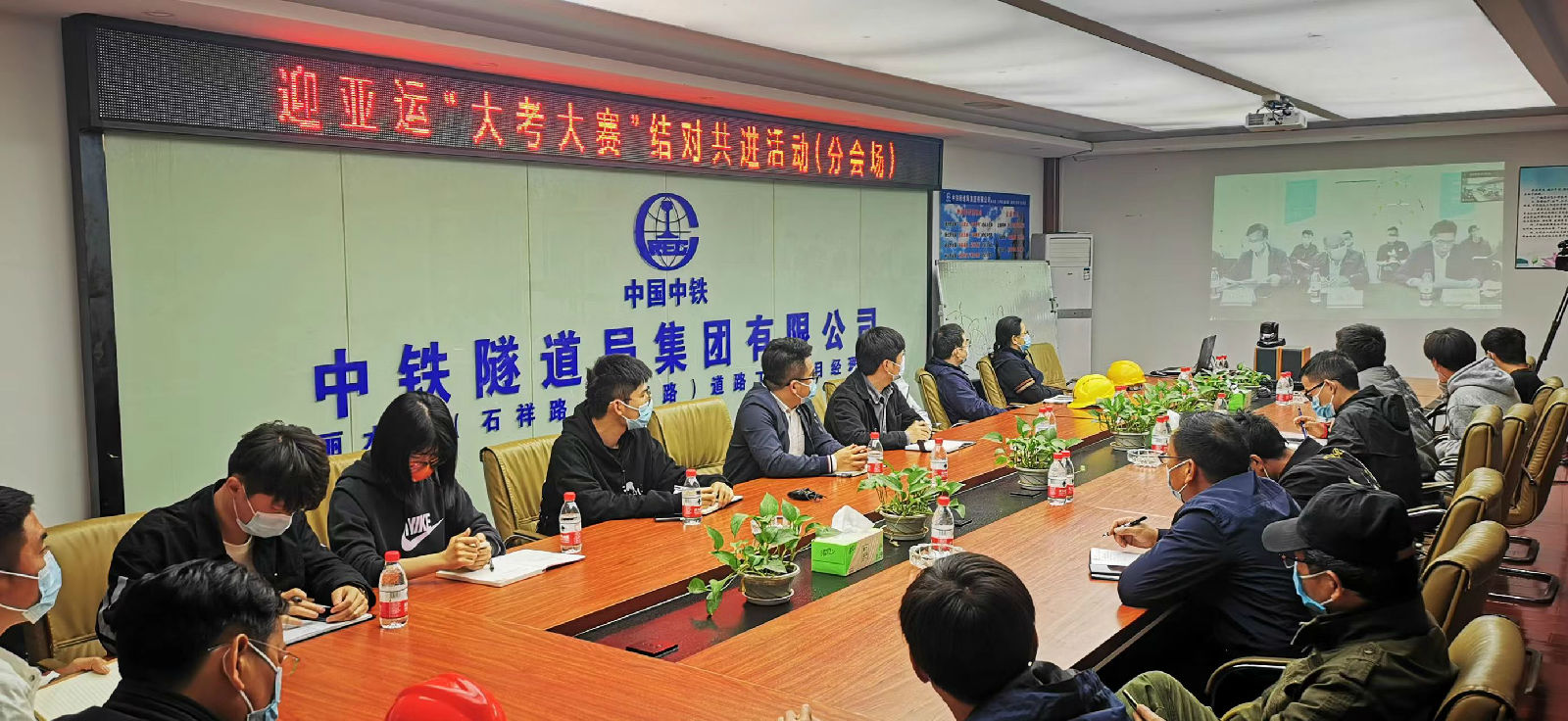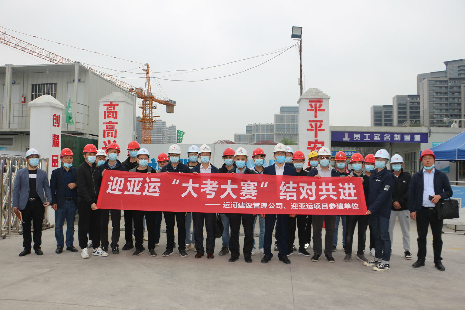 来源:运河建管 浏览次数:520次 2022-04-16为守好红色根脉、强化党建引领,切实扛起建管担当,以时不我待、只争朝夕的精神状态,高标准高质量完成迎亚运工程项目,根据《“红色领杭 奉献亚运”大考大赛活动方案》总体要求,4月14日,运河建设管理公司在做好疫情防控工作同时,采取主会场和分会场形式,分别在景芳三堡单元27地块地下停车场及绿地公园项目部(主会场)和丽水路(石祥路-金昌路)道路工程项目部(分会场),通过视频同步召开迎亚运“大考大赛”结对共进活动。公司班子成员、各部室负责人、党员代表、15个迎亚运项目施工单位及监理单位负责人分别在主会场或分会场参加活动。