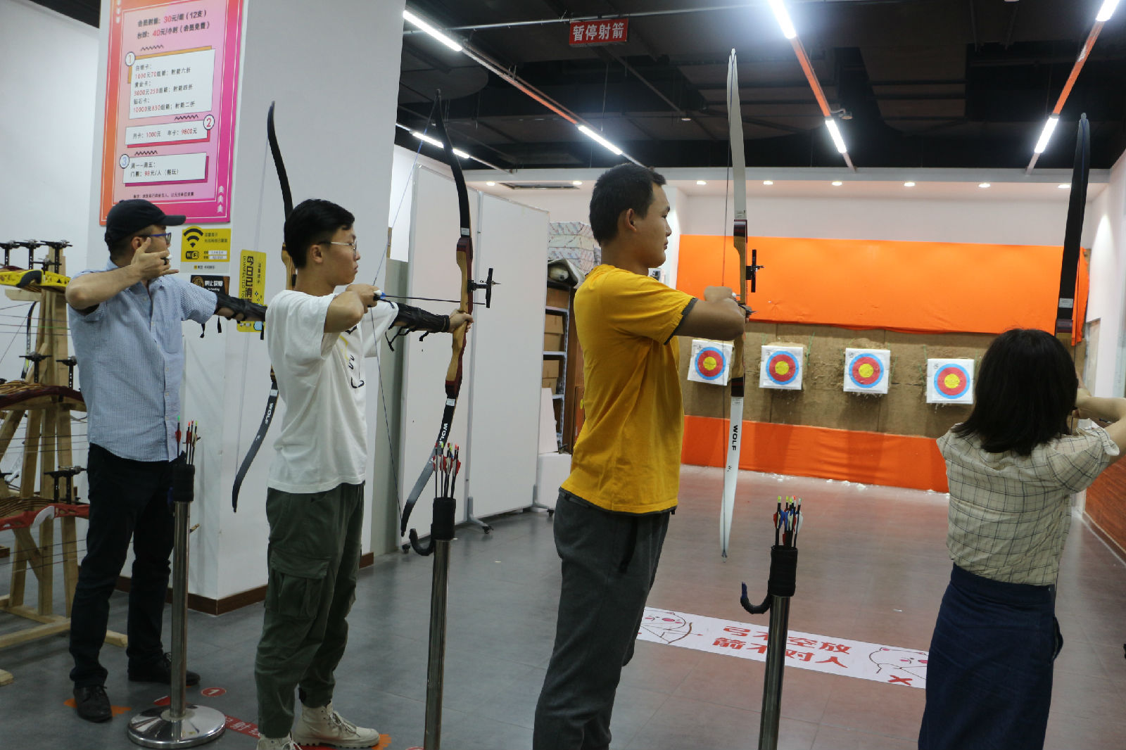 射箭是一项能够让人从肌肉锻炼到精神放松的运动,能够锻炼毅力,改善心态。瞧,大家正在教练的指导下,熟悉着射箭的动作要领。