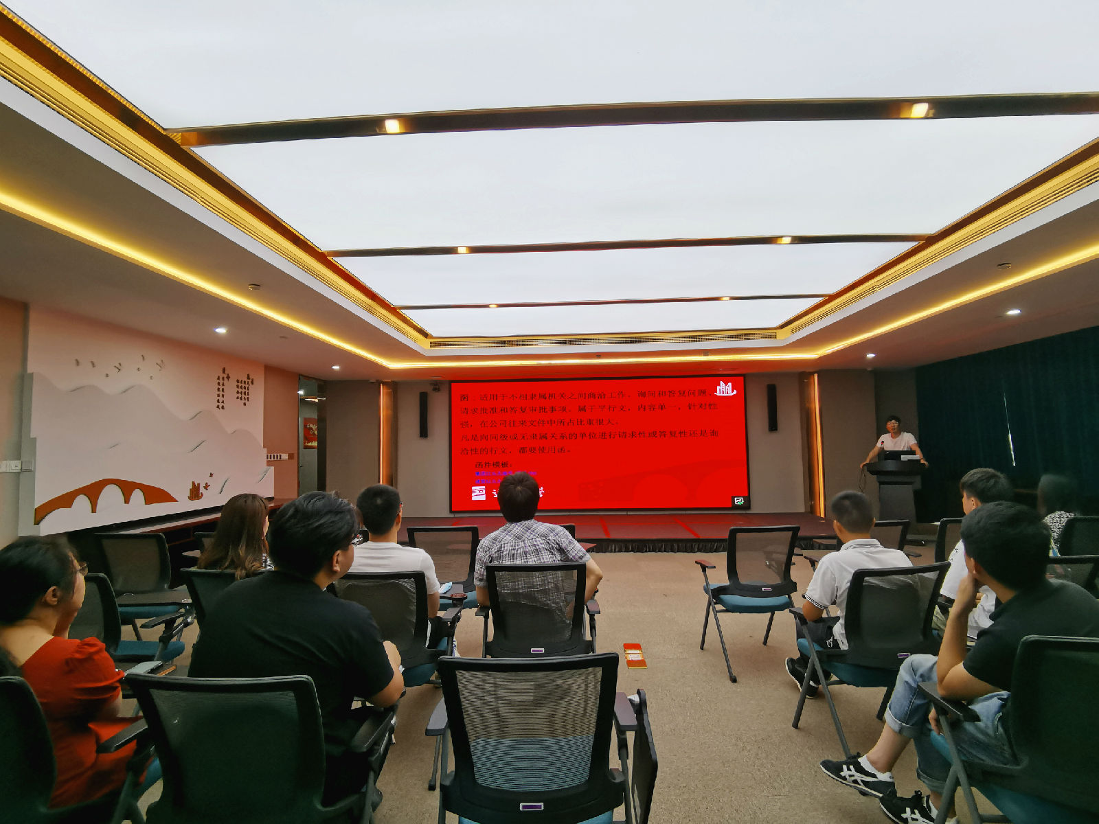 相关部室负责人从集团以及建管公司的历史变迁、现有业务、发展规划和企业文化到行政公文的类别、格式,支委会会议流程、规范;从公司考勤休假、绩效管理、培训、员工手册等相关制度到公司福利、职称、档案管理相关事宜;从招投标、合同管理等相关制度到廉洁自律教育,通过案例、视频、图片等形式,进行了详细讲解。并勉励新员工团结拼搏,求实创新,不断攀登新的高峰;希望新员工坚守底线、不越红线,清白做人、干净做事,守住清廉防线。